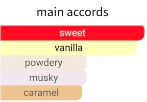 Base notes: caramel, vanilla, musk