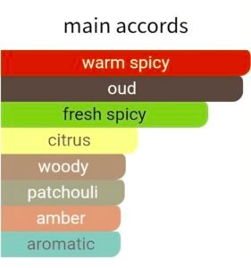 Base notes: patchouli, leatherwood, agarwood